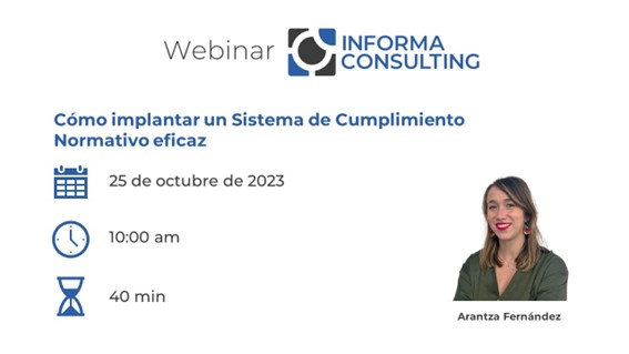 Last Wednesday 25th October the monthly Q&A Webinar was conducted by our colleague Arantza Fernández, partner at Informa Consulting, who explained and gave us the guidelines to implement an effective Regulatory Compliance system.